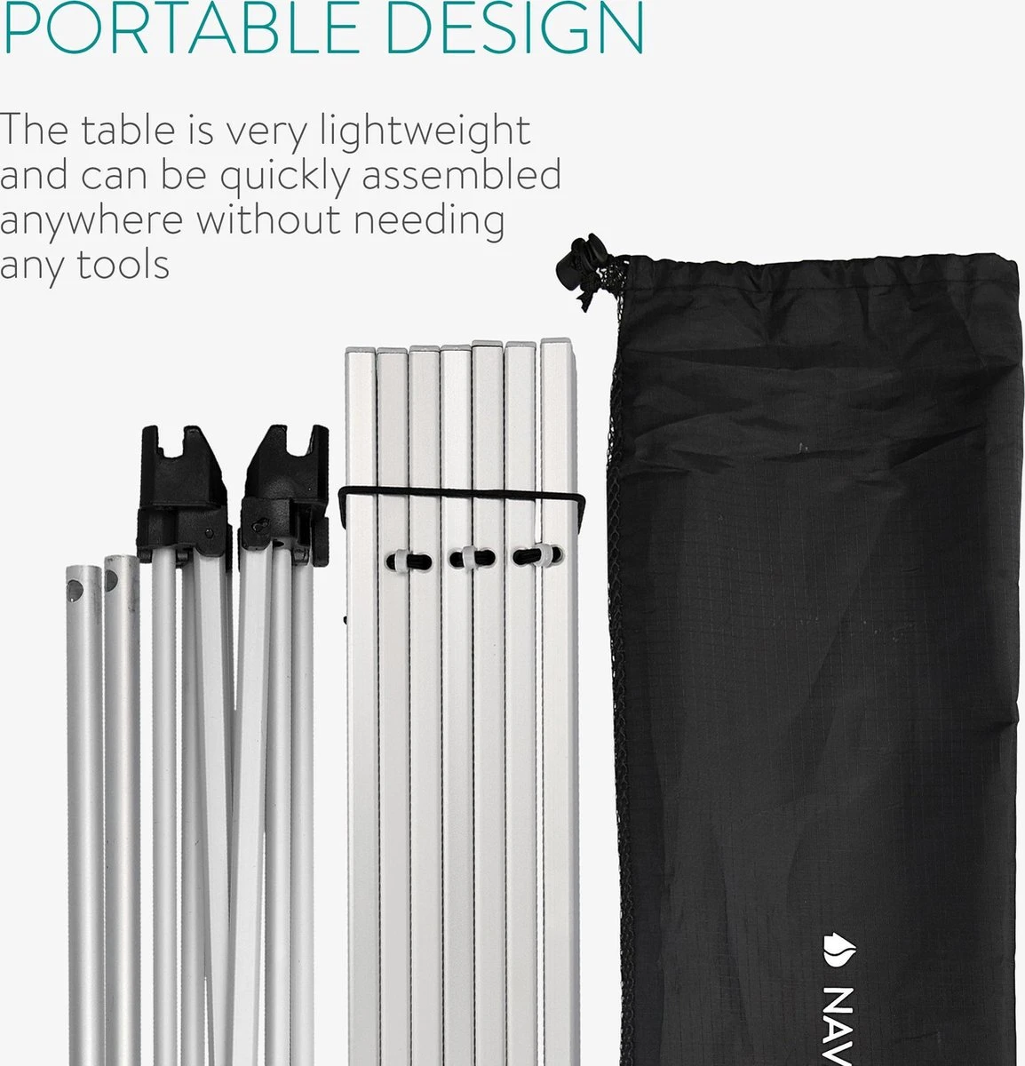 Deze campingtafel van Navaris is de perfecte toevoeging aan je kampeeruitrusting. SNEL IN ELKAAR